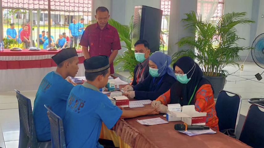 Sebanyak 200 orang tahanan maupun narapidana dilakukan tes HIV/AIDS dan diambil sampel darahnya di Aula Saharjo Rutan Sambas.